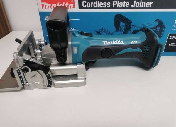 Eine Akku - Nutfräse mit einem 100 mm Messer und einer Schnittleistung von 20 mm für Zimmerarbeiten. Das Gerät ist geeignet für Nutverbindungen in Platten und anderen Holzstrukturen. 6 verschiedene Einstellungen mit Tiefen - Feineinstellschraube.